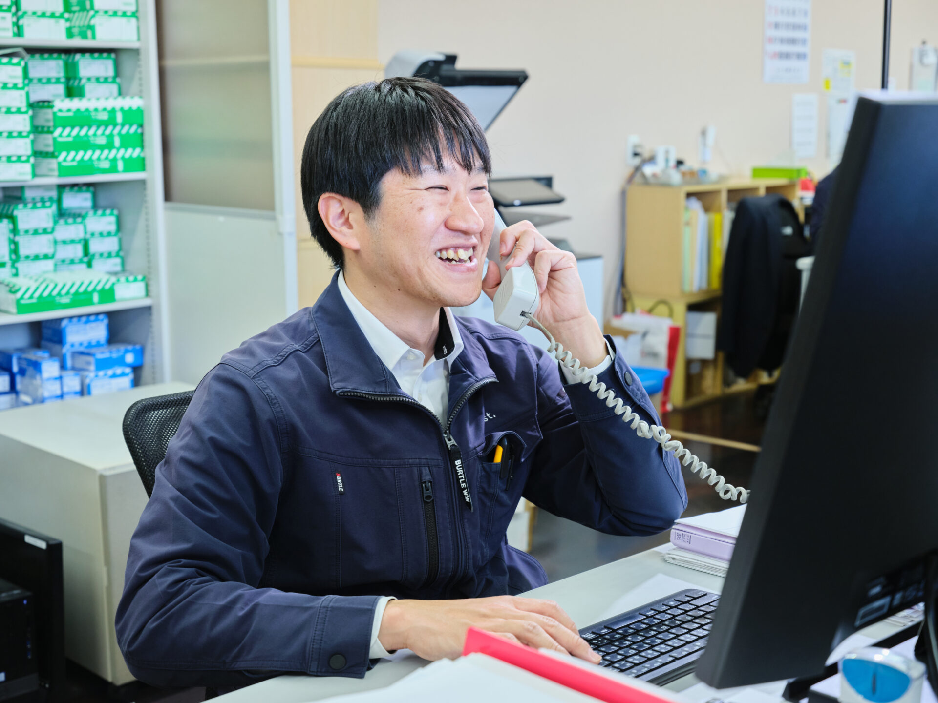 受発注や伝票処理、電話応対に加え、備品管理など総務業務を幅広く担います。PCに向かう事務作業だけでなく、倉庫内での商品管理や、来社される業者様への窓口対応、商品の準備なども行うアクティブな仕事です。内勤と現場の両面から会社を支える役割のため、動きのある業務を好む方に最適な職種です。